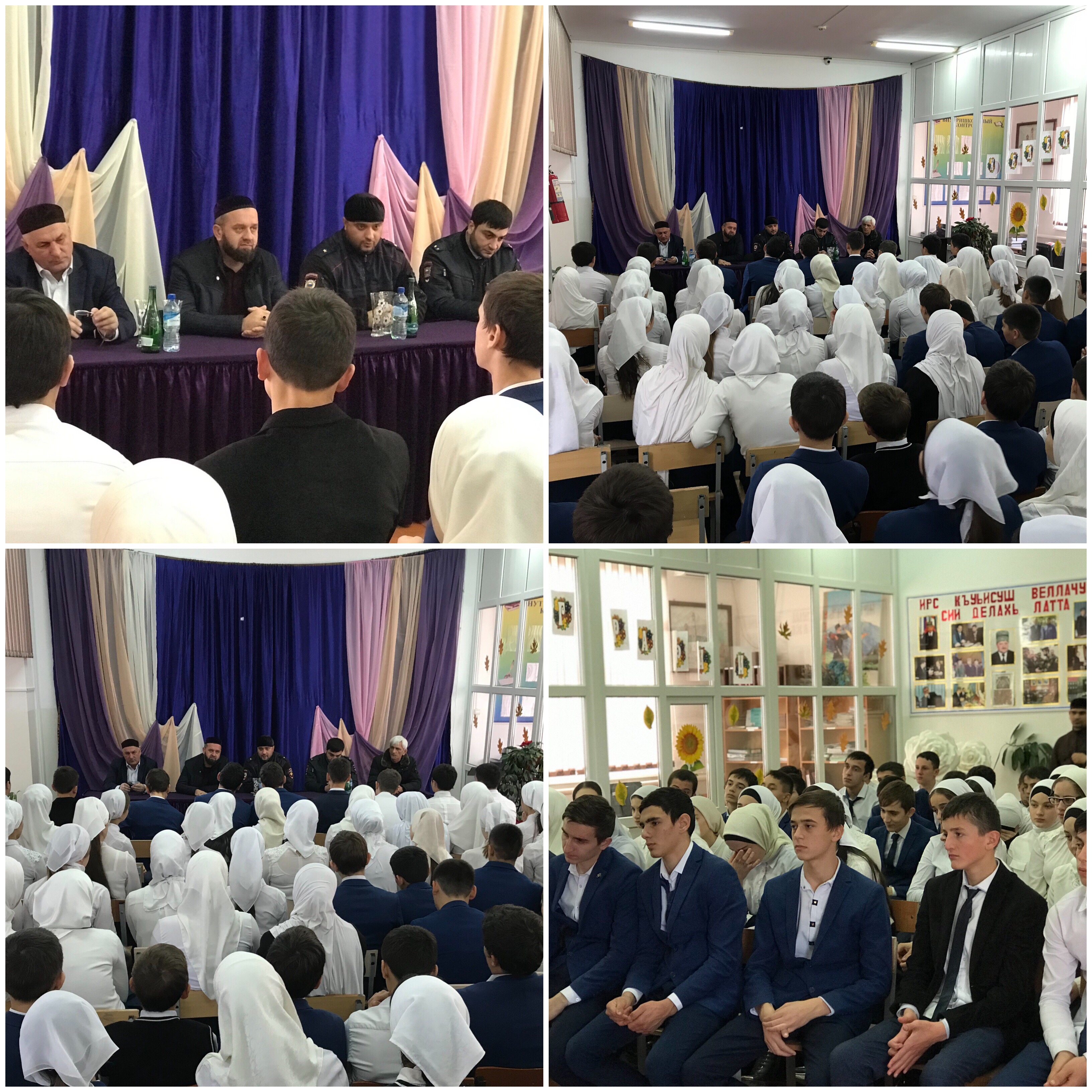25.11.2019Встреча-беседа с Кадием района. Встреча с представителями духовенства и силовых структур с учащимися школы из числа среднего и старшего звеньев на предмет противодействия распространению ложной информации и разжиганию межличностных конфликтов путём дезинформации населения через ИКТ.