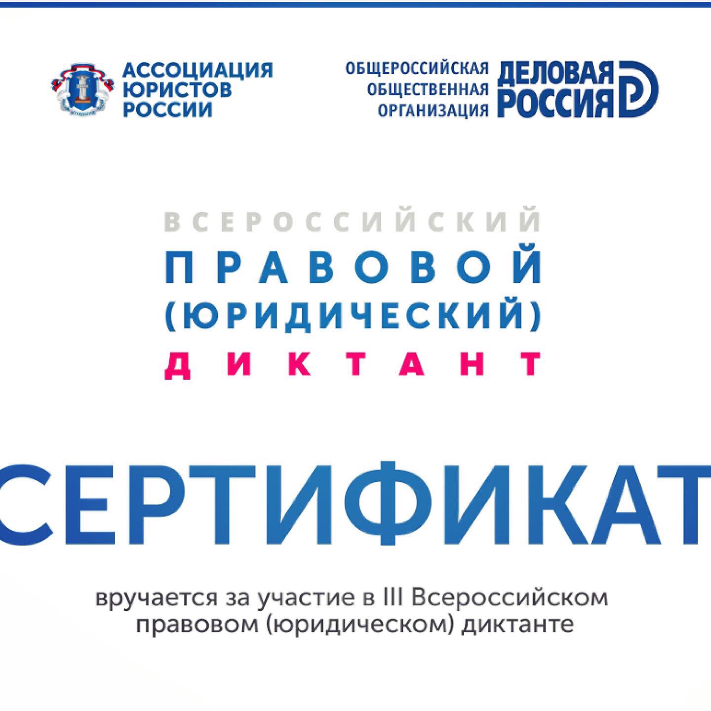 Участие в III Всероссийском правовом (юридическом) диктанте.