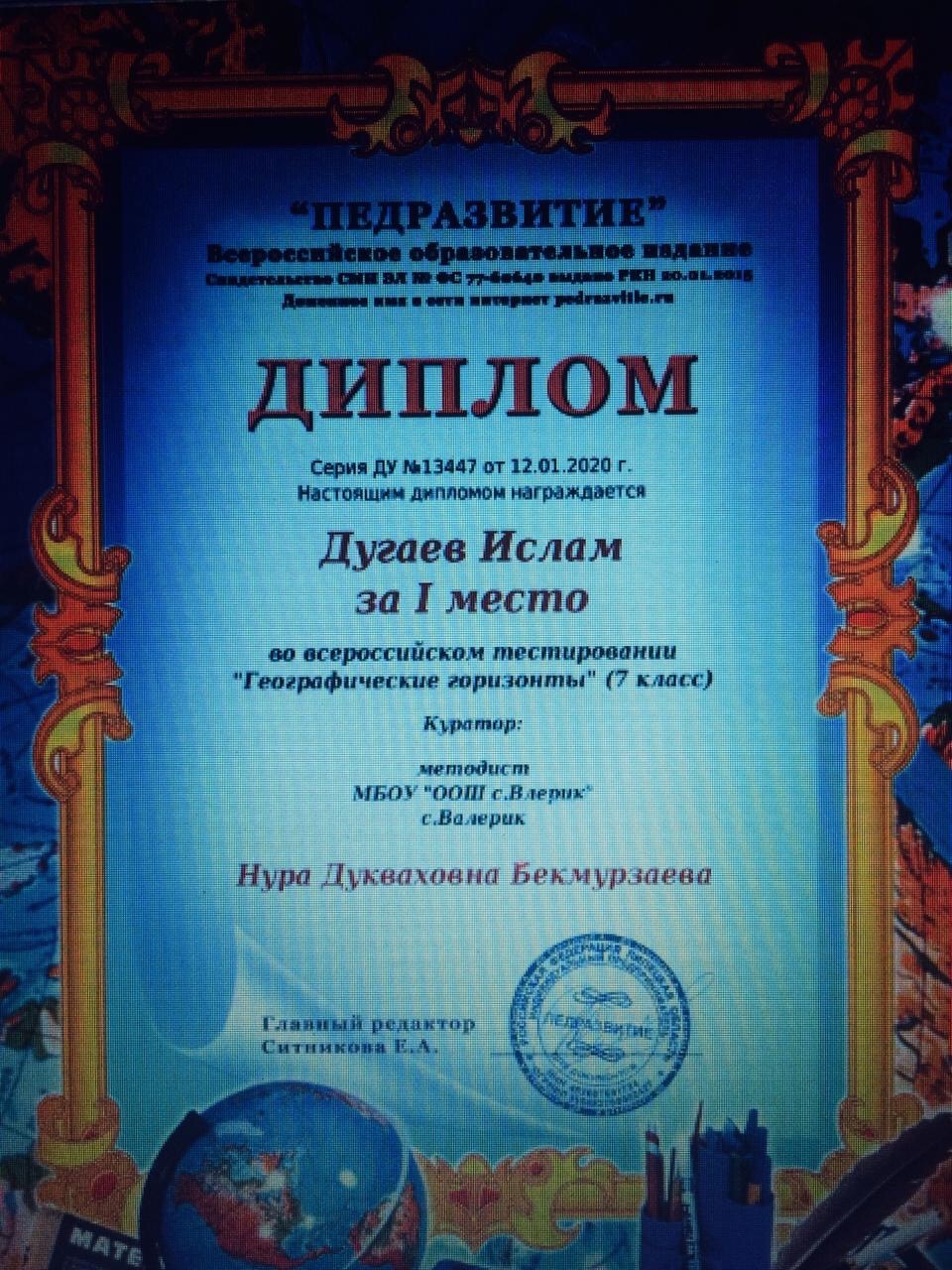 Ученик 8 класса Дунаев Ислам