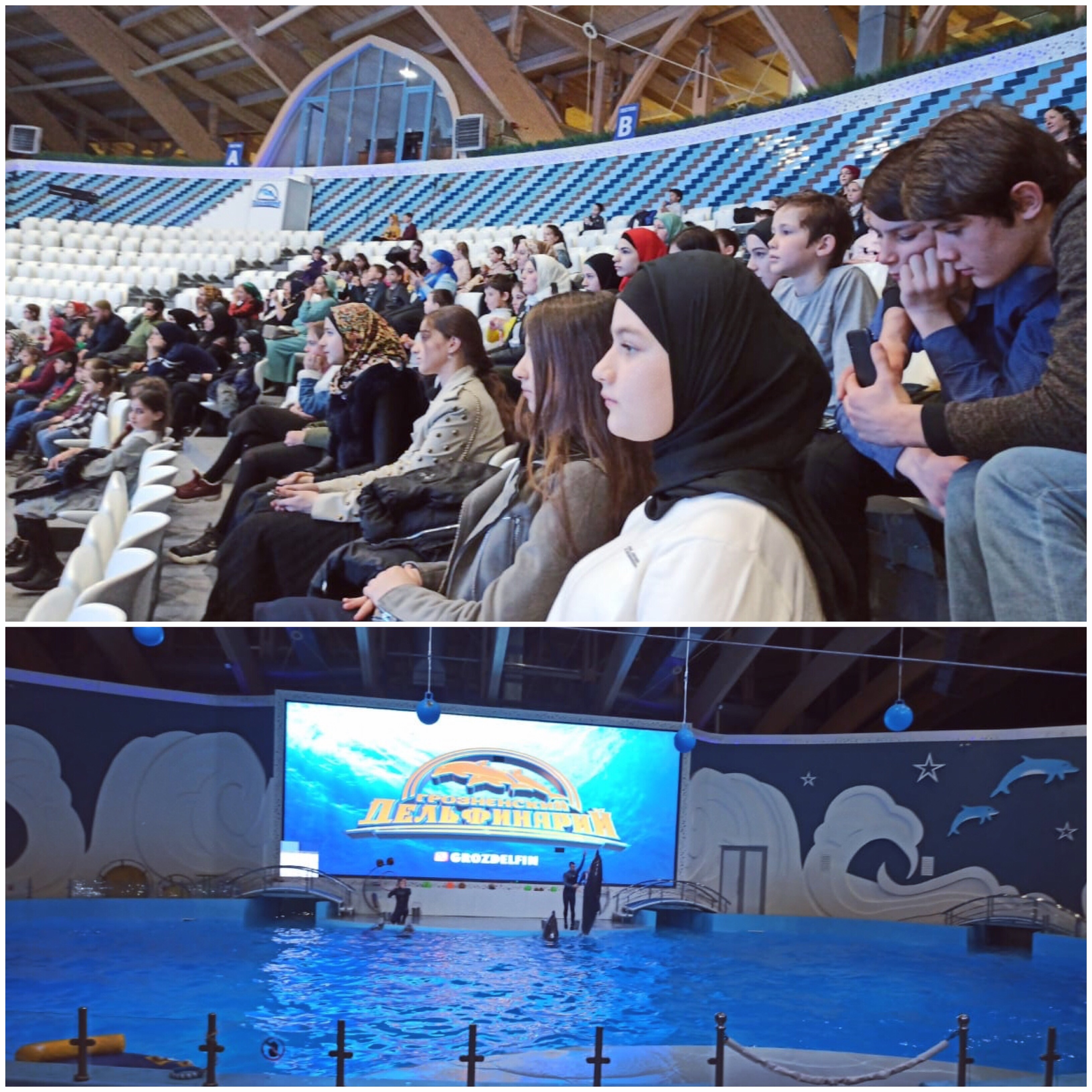Четыре дельфина — Зака, Ноя, Макса и Протея, самка морского котика Маша и морская львица Найва. Их в Грозный привезли из Анапы. Шоу великолепное — сложные трюки, отличная постановка, музыкальное и световое сопровождение.