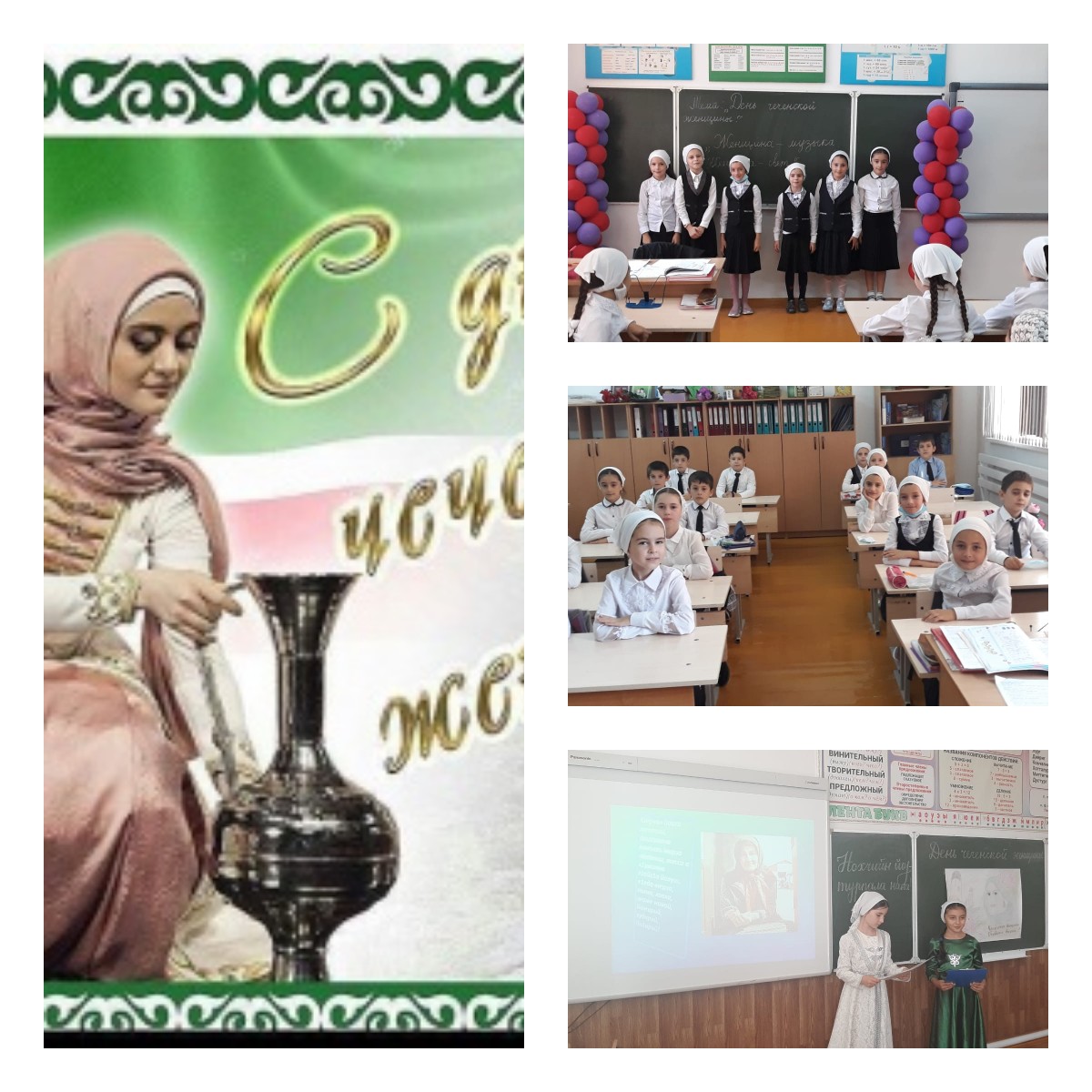 В МБОУ «ООШ им. А-Р. З. Зайнутдинова с. Валерик» в ознаменование Дня чеченской женщины, в целях формирования нравственной культуры учащихся, воспитания уважения и любви к матери, женщине, прививания уважения и любви к традициям и обычаям вайнахов, проведены классные часы.