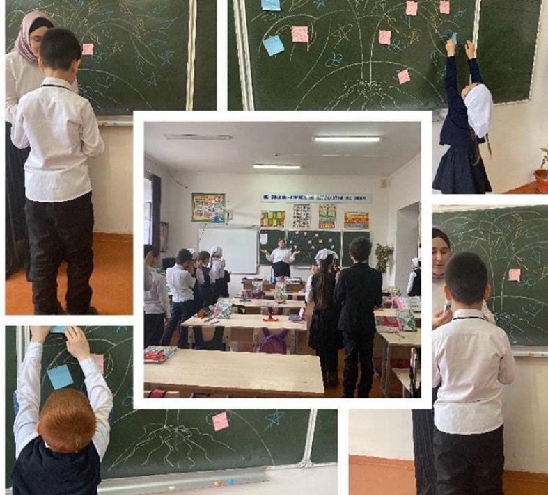 Педагог-психолог Рамазанова З. С-М. провела профориентационное занятие с элементами тренинга в четвертом классе на тему:"Кем я хочу стать?"