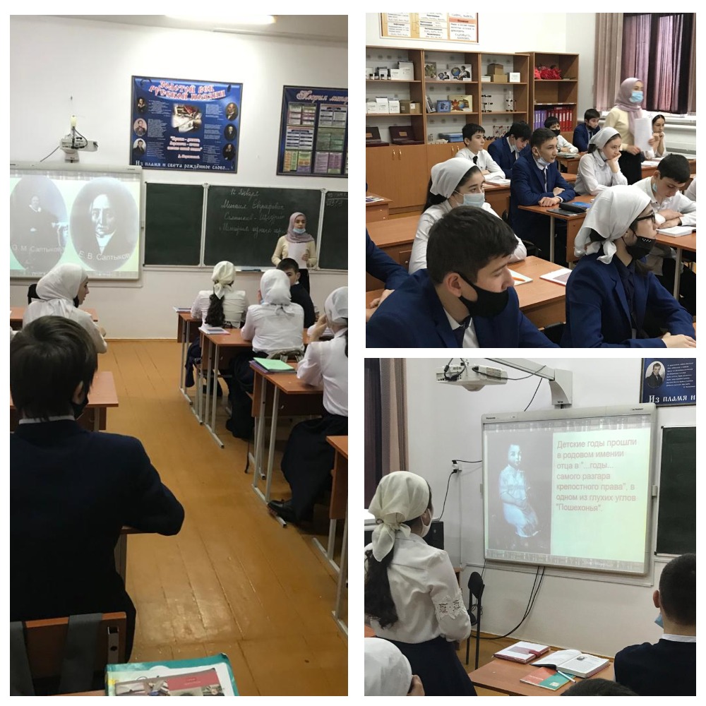12.01.2021Урок литературы в 8 б классе по роману М. Е. Салтыкова - Щедрина "История одного города". На уроке учащиеся вместе с учителем Бибулатовой Дианой Салаудиевной открыли важный человеческий смысл произведения М.Е. Салтыкова-Щедрина, раскрыли суть моральных категорий на примере биографии писателя,