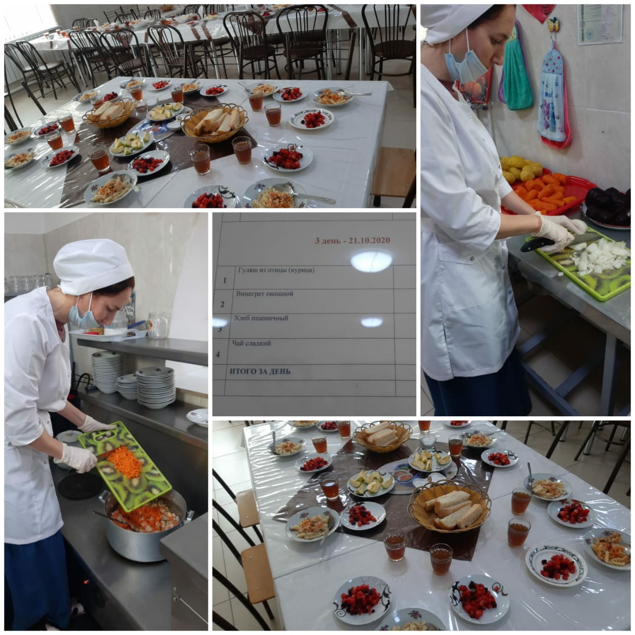 Сегодня повар школы приготовила детям рагу из курицы, винегрет овощной.