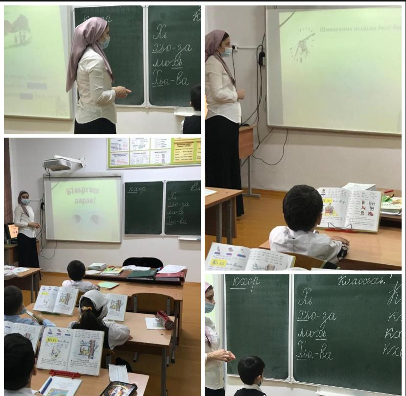 Урок чеченского языка в 1 классе ведет учитель начальных классов Хатаева П. Г. На уроке учителем применяются интерактивные технологии.
