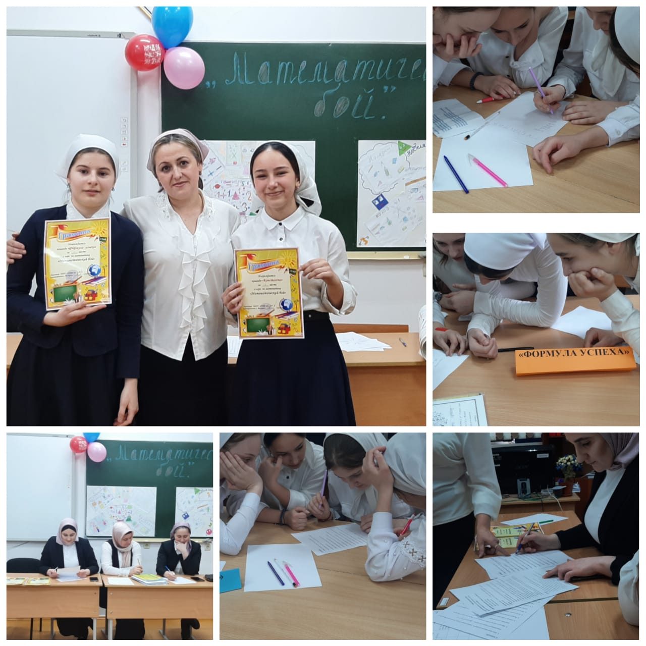 Игра "Математический бой" проведена с учащимися 8-х классов. Мероприятие организовала учитель математики Мисирбиева Л. А.. Победителем в конкурсе стала команда "Формула успеха", представленная учащимися 8 а класса.