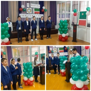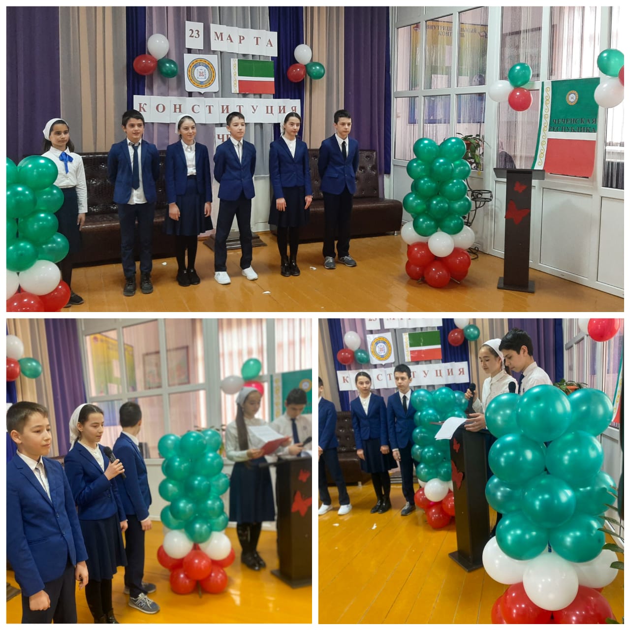 Общешкольное мероприятие ко Дню Чеченской Конституции, который празднуется 23 марта. Мероприятие подготовлено заместителем директора по воспитательной работе Кантаевой Л. А.