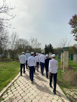 19.04.2022Обучающиеся школы вместе с педагогом по духовно-нравственному воспитанию Алархановым В, Г, и заместителем директора по ВР Кантаевой Л. А. посетили зиярт святого авлия Ахмат-Дукъи на кладбище в с. Шаами-Юрт.