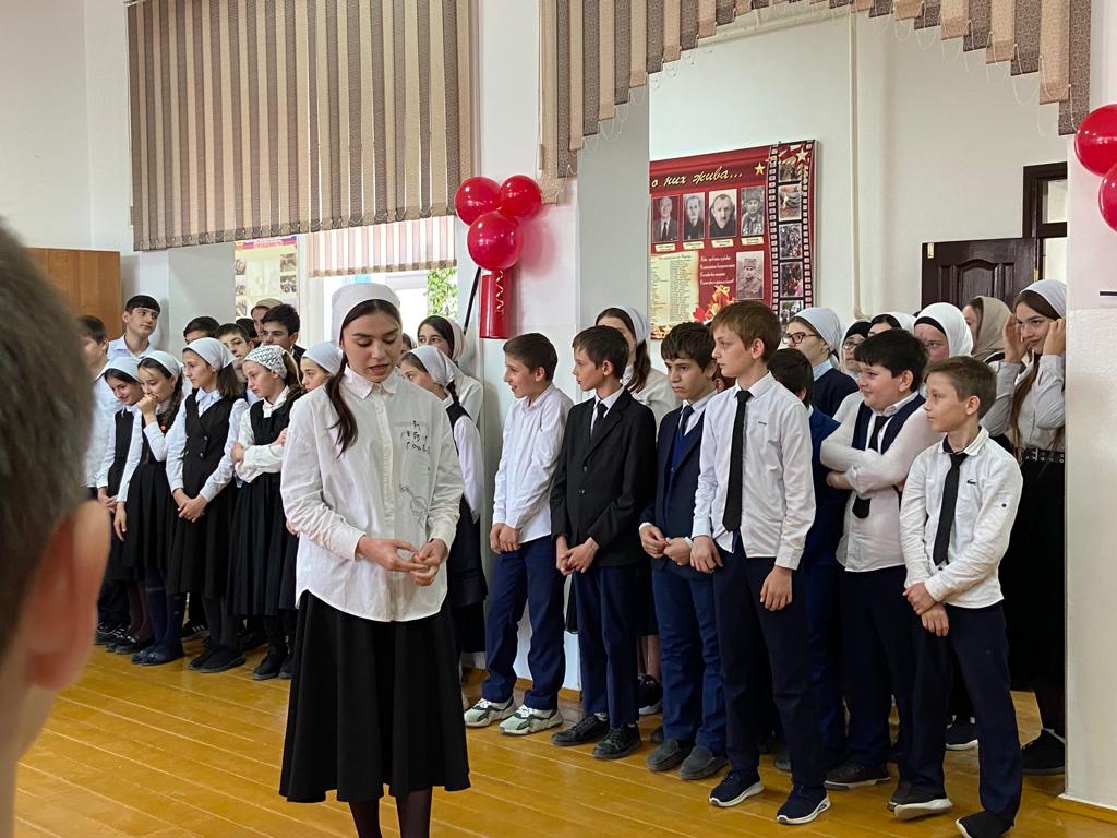 25.04.2022Сегодня в школе состоялась торжественная линейка, посвященная Дню Чеченского языка - «Ларбе мотт, хазбе и».