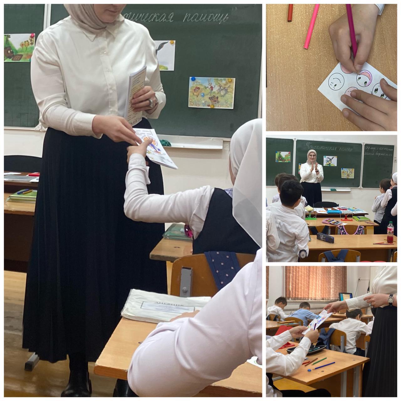 Сегодня педагог-психолог школы Рамазанова Зулихан Сайд-Магомедовна проведа с обучающимися 5 б класса занятие с элементами тренинга на тему "Психологическая помощь".