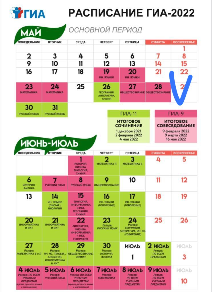 11.05.2022В соответствии с утвержденным расписанием государственной итоговой аттестации 2022 года выпускники нашей школы будут сдавать два обязательных экзамена: