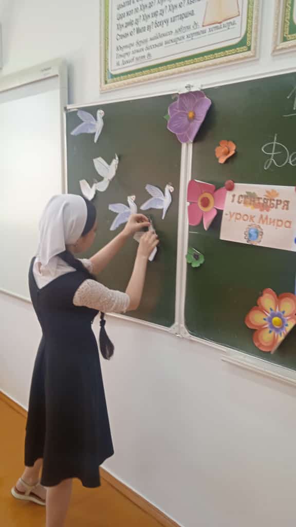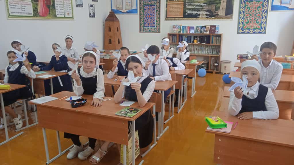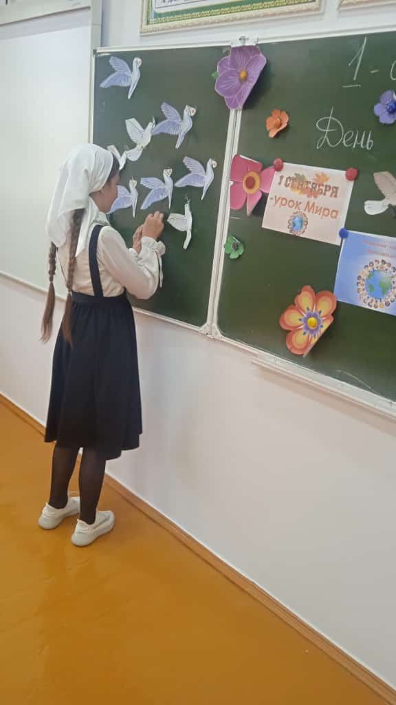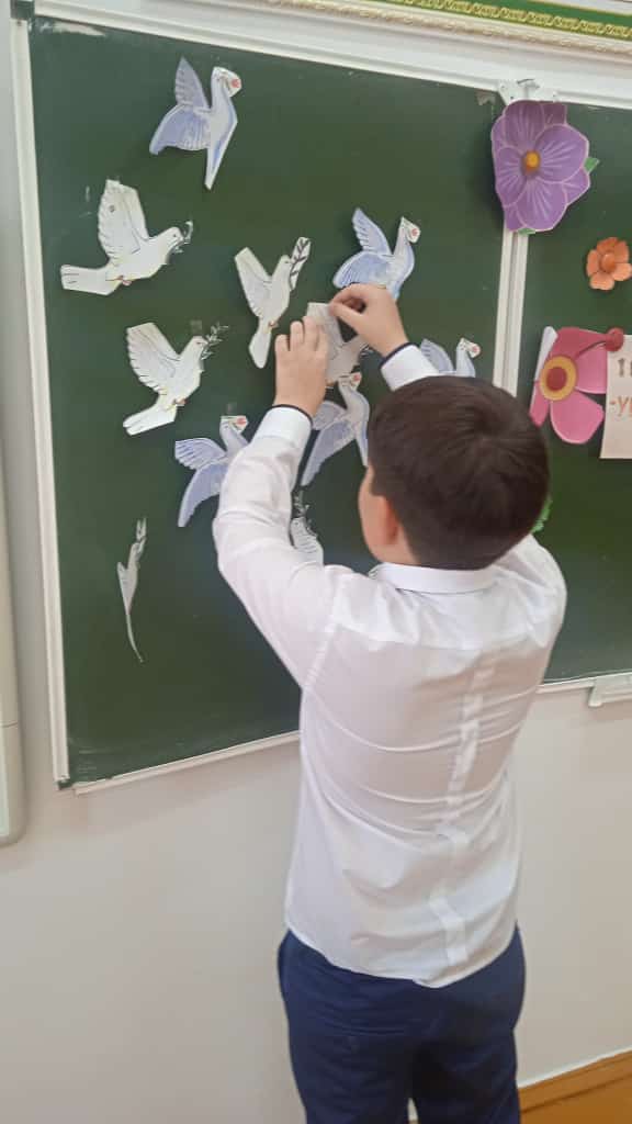 Учащиеся 6 а класса под руководством своего классного руководителя Светланы Тахировной решили тоже внести свой вклад в дело борьбы за мир. Все вместе они сделали Голубей мира. На каждом голубе написали свое пожелание мира для всех людей нашей большой планеты. "Пусть наши голуби всему миру расскажут о том, что дети в России и других странах не хотят войн".