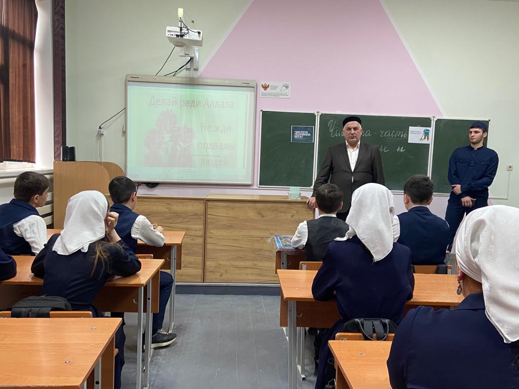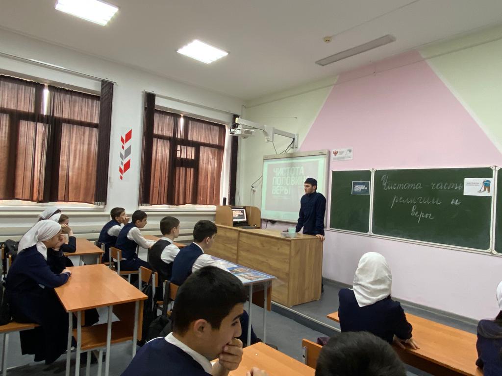 26.01.2023Сегодня педагог-организатор по ДНВР Тутаев А. М. провёл беседу с учащимися 8-9 классов "Чистота - часть веры". В беседе принял участие директор школы Хадаев А. А.