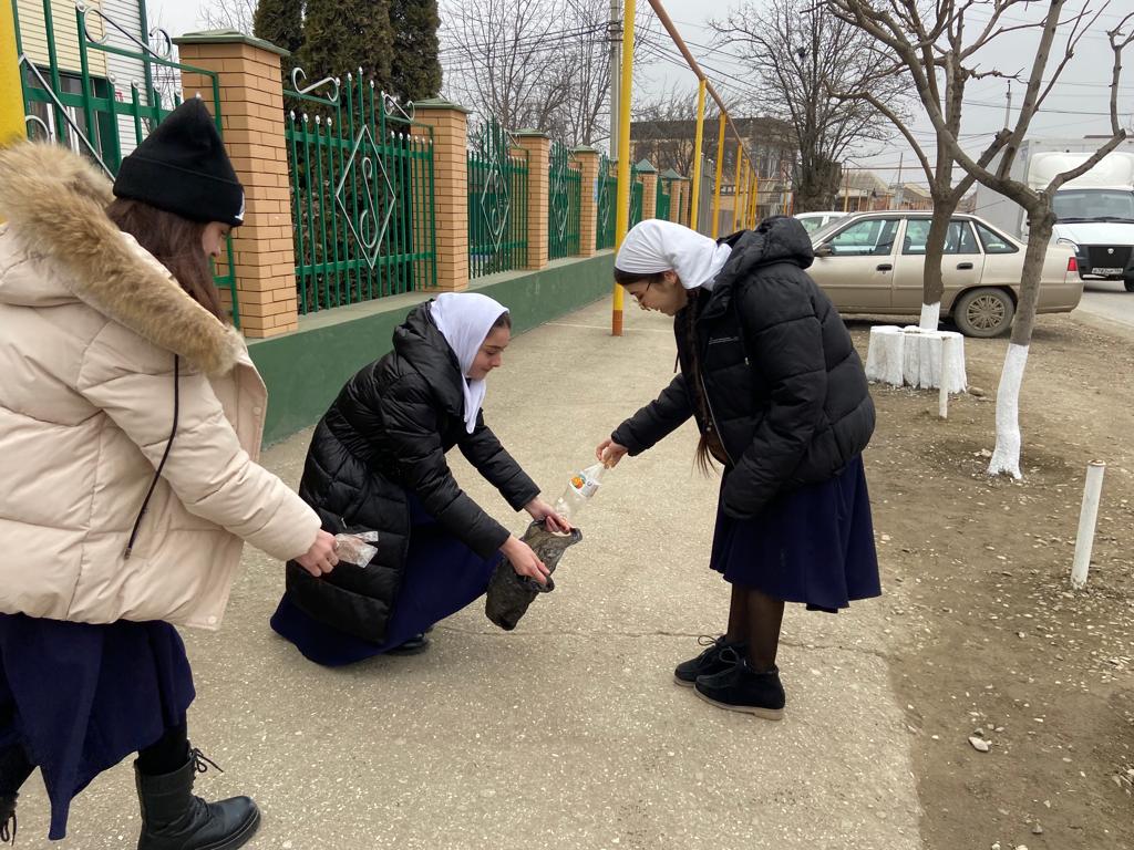 После беседы учащиеся приняли участие в очистке территории, прилегающей к школе.