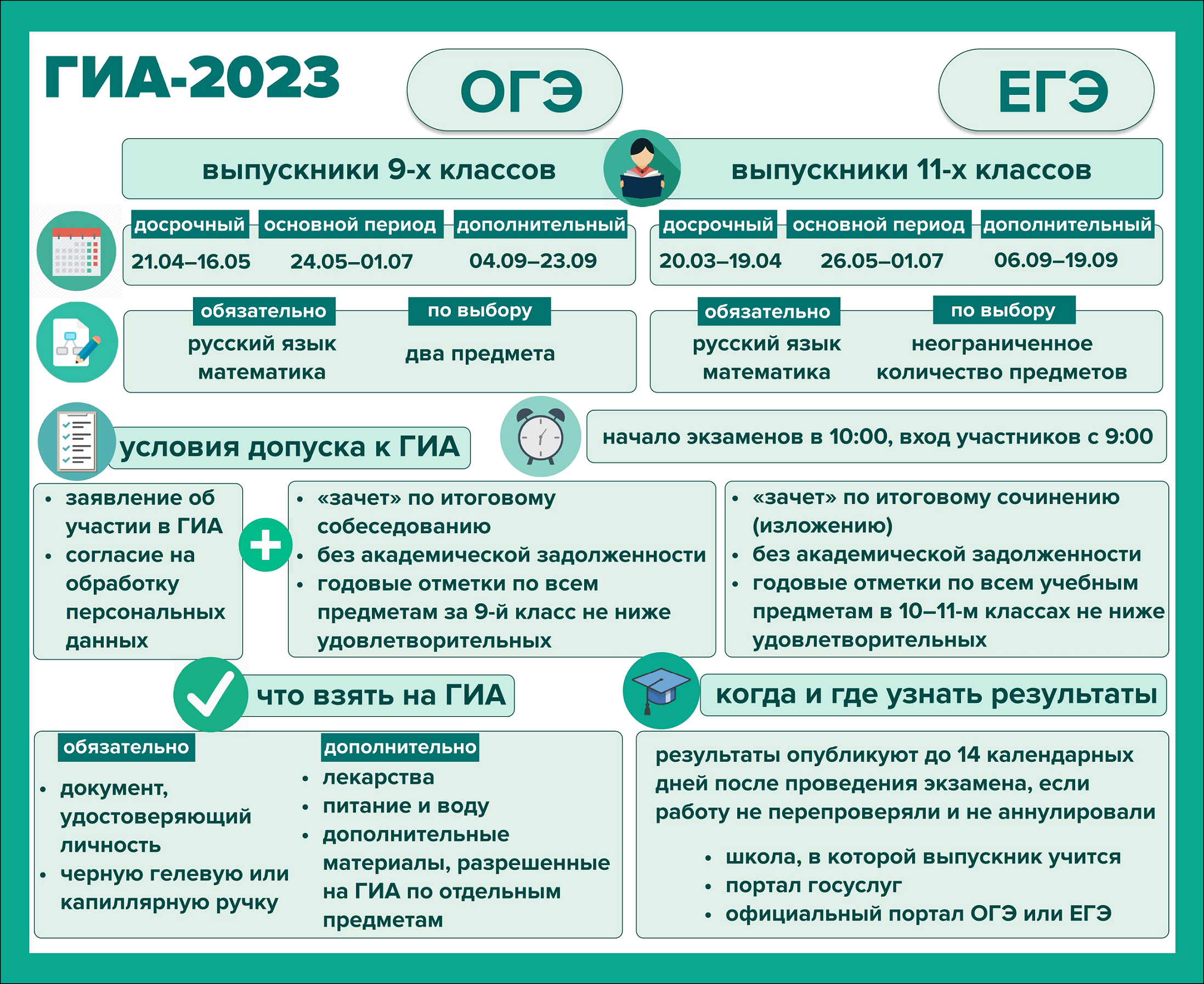 30.01.2023В плакате ГИА - 2023, содержится вся основная информация по государственной итоговой аттестации для выпускников 9 и 11 классов: