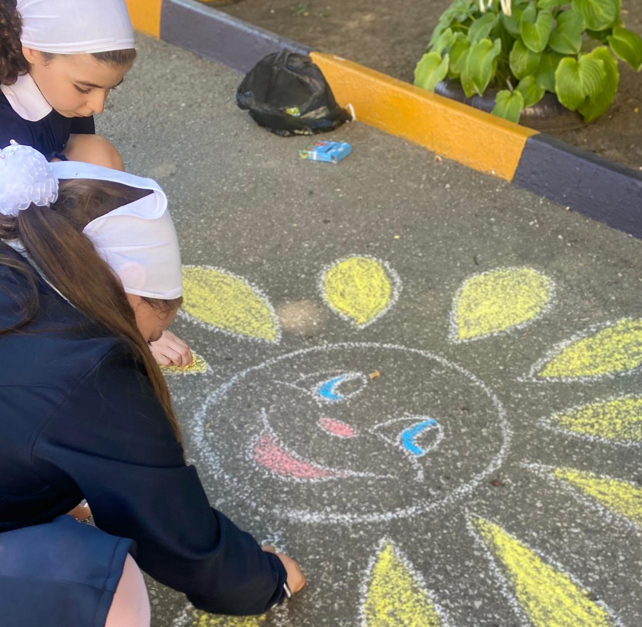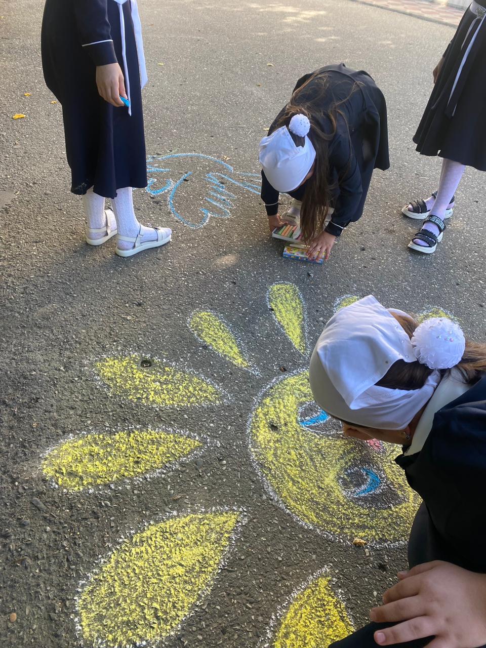 Участники конкурса создали рисунки на асфальте по темам «Я рисую мир», «Пусть всегда будет солнце».