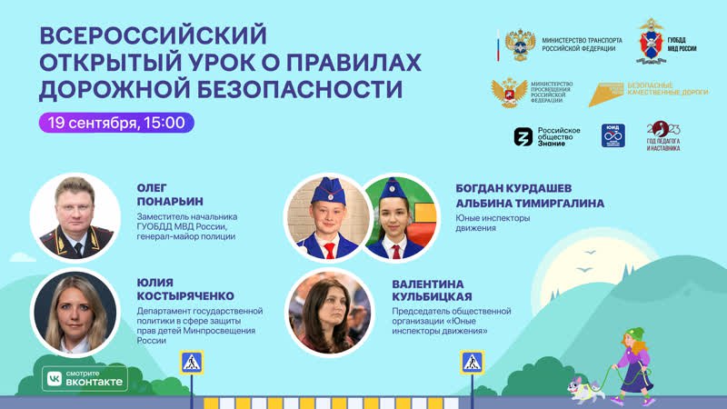 Онлайн–трансляция Всероссийского открытого урока о правилах дорожной безопасности состоится 19 сентября в 15:00. Каждый участник и слушатель урока сможет вспомнить о простых, но важных правилах поведения на дорогах.