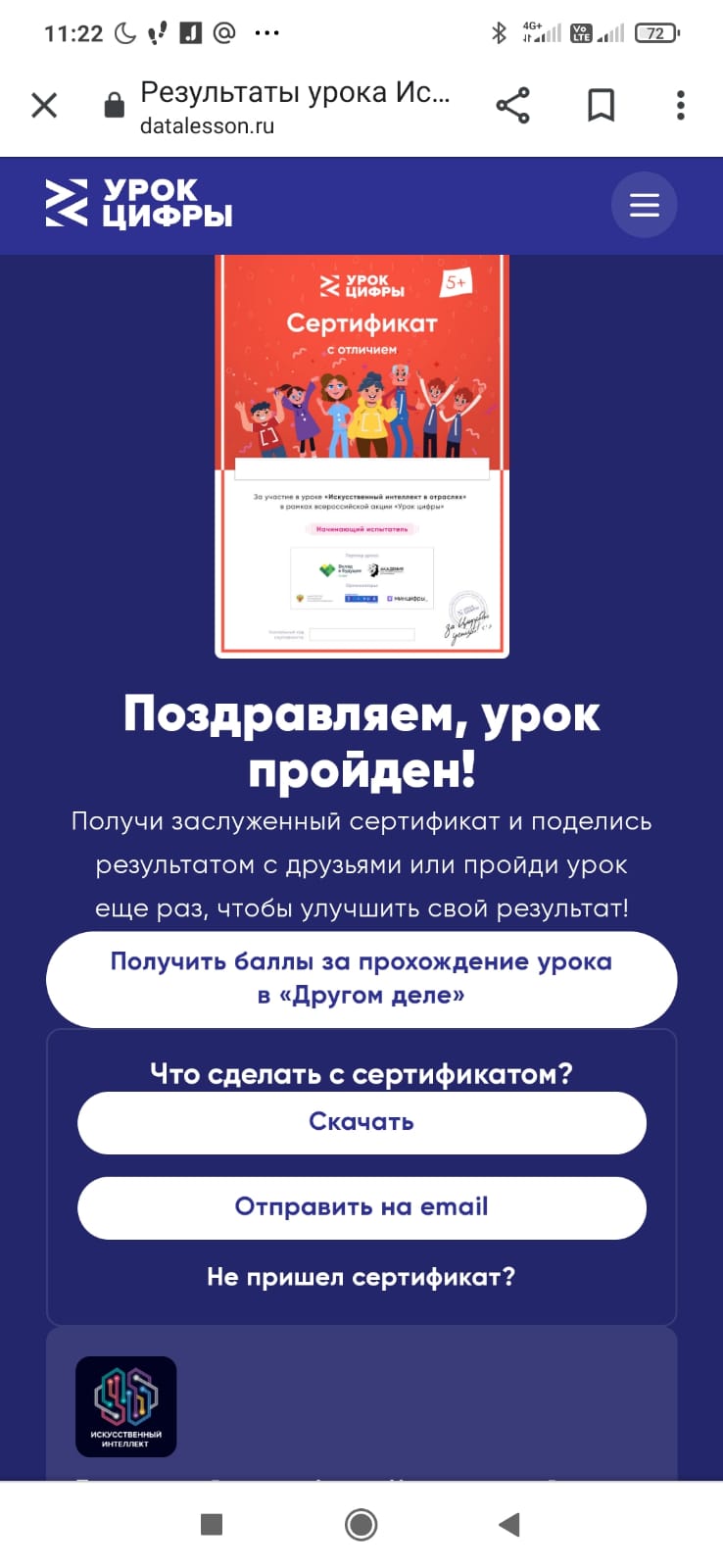 Мероприятие прошло в форме онлайн-тренажера. В ходе выполнения тренажера ребята узнали как искусственный интеллект меняет нашу жизнь и различные отрасли экономики, а также какие профессии будут актуальными в ближайшем будущем