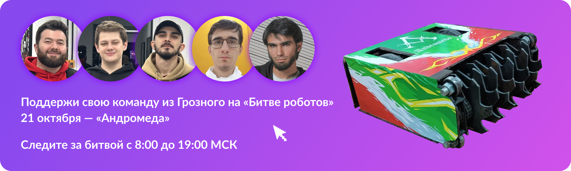18.10.2023В соответствии с распоряжением Правительства Российской Федерации от 11 апреля 2023 г. № 889-р при координации Мин цифры России ежегодно с 2023 года проводится Международный чемпионат по битве роботов (далее - Чемпионат), первый отборочный этап которого прошел 16 сентября 2023 г. в Московской области в МВЦ «Крокус Экспо» с участием 24 команд из России, Турции, Индии и Казахстана.Цель Чемпионата - привлечь внимание к современным и перспективным технологиям, востребованным направлениям инженерных наук, стать двигателем робототехнического движения и сформировать у участников Чемпионата потребность к получению новых знаний и компетенций.Второй отборочный этап Чемпионата пройдет 21 октября 2023 г. в г. Перми. Зрителей ждет четыре шоу (с 8:00 до 19:00 по московскому времени), а также познавательная программа. Участники второго отборочного этапа Чемпионата - 34 команды из России, Индии и Китая, в том числе команда из Чеченской Республики «Андромеда» (ссылка на сообщество:https: //vk.com/andromeda_robots