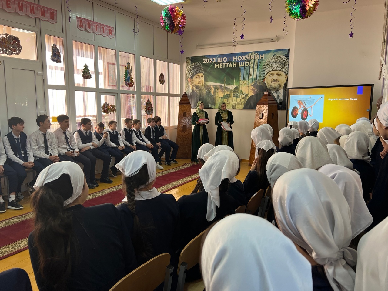 Сегодня в школе проведено мероприятие, посвященное закрытию Года Чеченского ящыка. На мероприятии присутствовали методисты районного отдела образования.