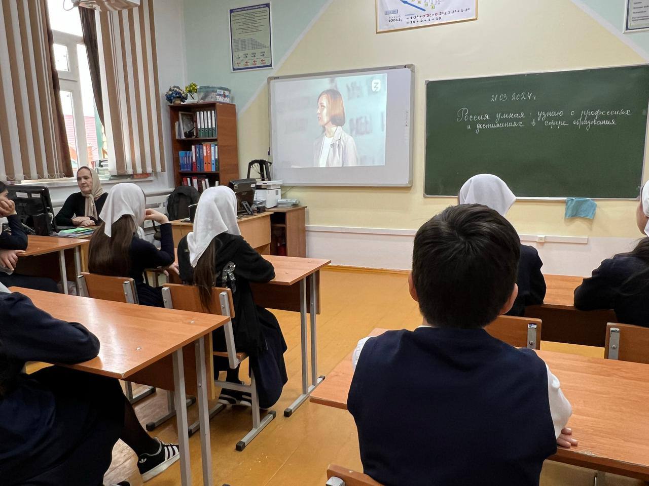 21.03.2024В МБОУ "ООШ им. А-Р.З. Зайнутдинова с.Валерик" 21 марта на новом занятии курса «Россия — мои горизонты» учащиеся познакомились с темой «Россия умная: узнаю о профессиях и достижениях в сфере образования».