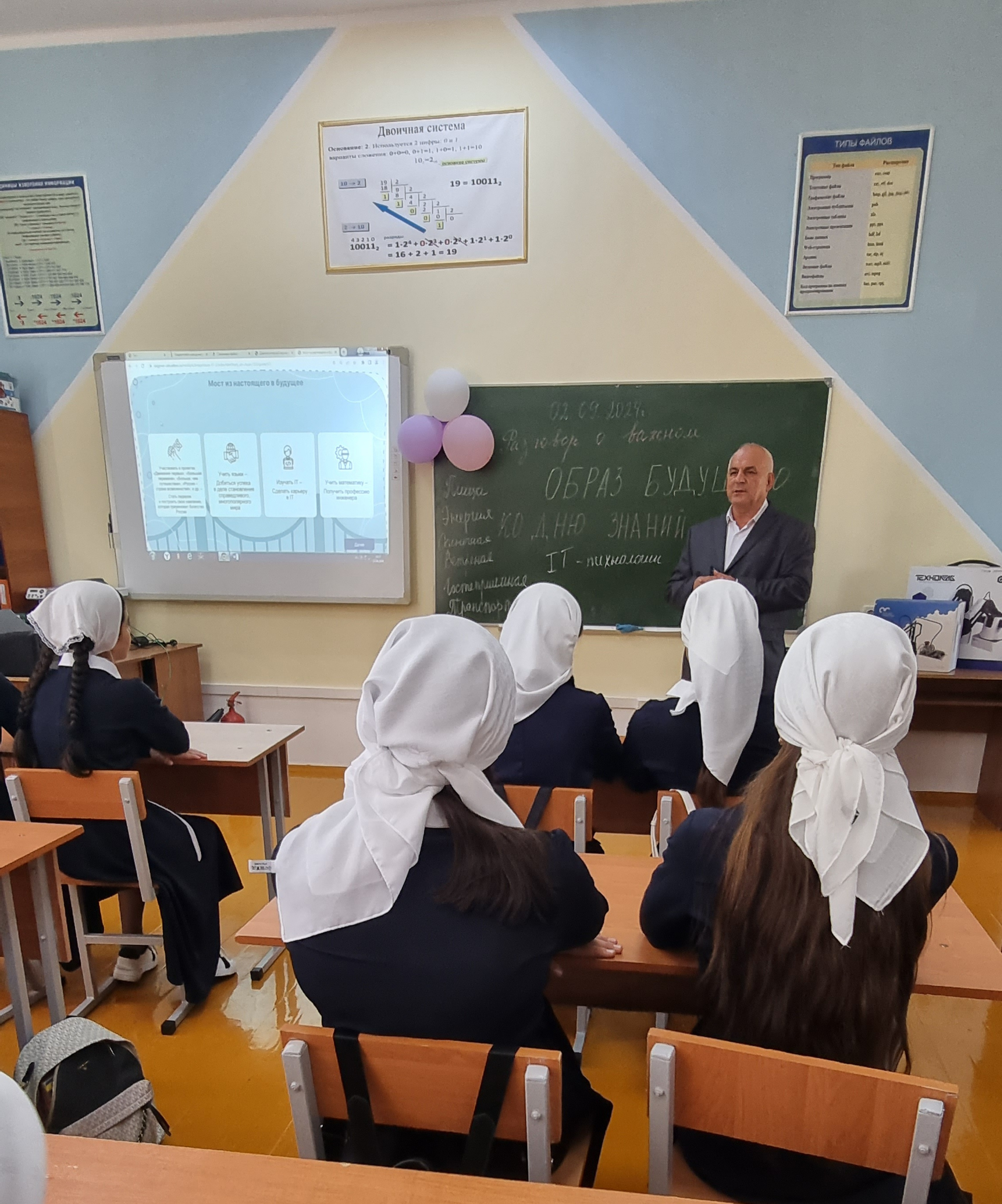 Сегодня , 2 сентября, как и во всех школах страны прошло первое занятие «Разговоры о важном» на тему «Образ будущего. Ко Дню знаний», посвященное образу будущего и его осмысленному формированию у обучающихся в преддверии нового учебного года.