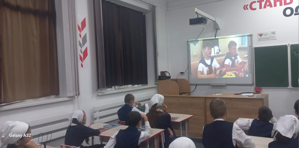 Для обучающихся МБОУ "ООШ им. А-Р.З. Зайнутдинова с.Валерик" 18 сентября прошло очередное занятие с просмотром видеолекции «Движение первых»