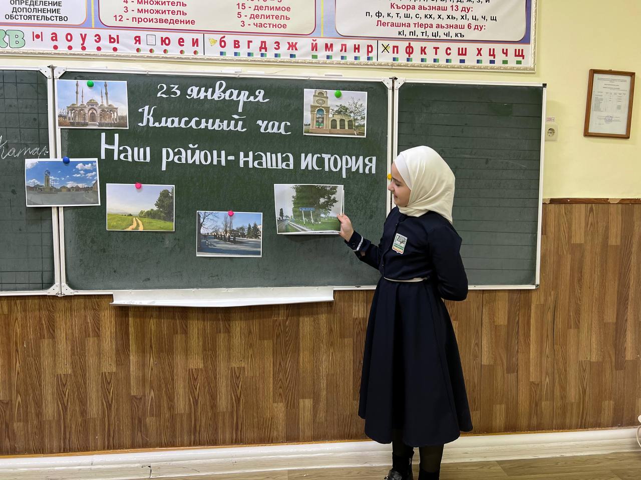 23 января 2025 года в МБОУ "ООШ им. А-Р.З. Зайнутдинова с.Валерик» прошли классные часы, по теме « Наш район –наша история ».