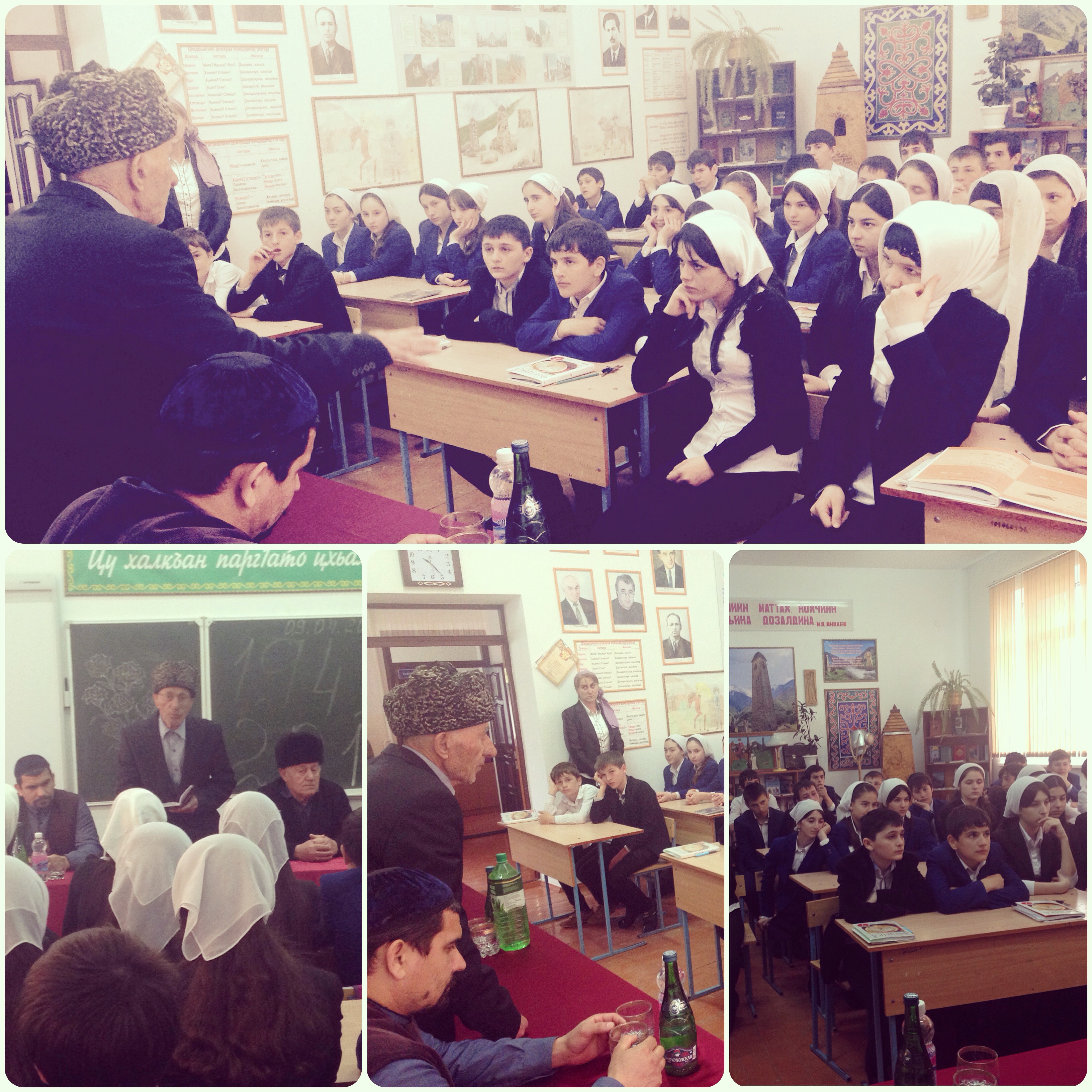 С целью формирования патриотизма и гражданственности; знакомства с причинами, масштабом и последствиями Великой Отечественной Войны; формирования навыков и отрицательного отношения к войне и насилию 9 апреля 2014-2015 учебного года в МБОУ «ООШ с.Валерик» проведена встреча со старейшинами Эльмурзаевым Х.М. и Тагаевым Ш.М., так как в селе Валерик не имеются ветеранов ВОВ.Цель данной встречи: разъяснять сущность, причины, масштаб и последствия Великой Отечественной Войны.На данной встрече учащиеся узнали об основных этапах ВОВ, научились различать конкретные поступки человека с точки зрения правомерного и неправомерного поведения, формировалось отрицательное отношение к Войне.Эльмурзаев Х.М. известный историк села познакомил присутствующих с многочисленными ветеранами с.Валерик, которых к сожалению нет уже среди нас. Многие из них оказались родственниками учащихся. Рассказал ребятам историю начала войны, о том, как наш народ шел к победе; о коварных замыслах фашистов и их убийственных планах; о патриотизме и героизме советского народа; о чудовищной блокаде Ленинграда...Приглашенные поделились воспоминаниями о трудных, суровых военных временах, о тех чувствах, которые испытали в великий День Победы - 9 мая 1945 года- «Радость была неописуемая! Война окончилась! Эту дату, 9 мая, мы никогда не забудем! Это самый большой праздник для нашего поколения. Я желаю... помнить День Победы, и сейчас надо сделать все, чтобы мы были крепкими, сплоченными, младшее поколение уважало старших! Вам, ребята, - окончить школу, выбрать профессию, быть настоящими людьми! Уважать и любить своих родителей и своих близких! Всего-всего самого хорошего!»Школьники с интересом слушали каждое повествование о том страшном времени, о военных действиях, о труде наших женщин и детей в тылу, о том, какие испытания выпали на долю советского народа в годы войны, как, несмотря ни на что, наш народ выстоял и победил. Ученики настолько прониклись рассказами пожилых людей, что и послеокончания встречи подходили, задавали вопросы, уточняли фамилии ветеранов из нашего села.То, что было услышано, не пройдет бесследно, останется в юных сердцах детей.Это было видно по их неравнодушным лицам. Спасибо старейшинам, что они всегда готовы прийти на встречу с учениками, чтобы рассказать о пережитом.Если мы позаботимся о воспитании молодежи сейчас, то можно быть уверенными, что наше будущее в надежных руках. Такие встречи школьников воспитывают патриотизм, уважительное отношение к заслуженным людям, вызывают чувство милосердия.А мы в свою очередь поздравляем всех ветеранов с Праздником Победы! Здоровья Вам, дорогие !День Победы - это замечательный, светлый праздник мира.Давайте же постараемся сберечь нашу удивительную планету от новой беды. Пусть больше никогда черные тучи войны не заслонят солнце над нашей Родиной. Пусть всегда будет Мир!Директор школы: Хадаев А.А.