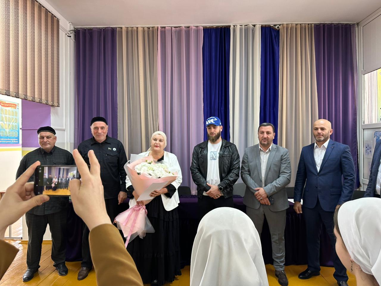 В конце встречи был отмечен многолетний труд дирекора школы Хадаева Адлана Абдрашидовича, заместителя директора по ИКТ Мугаевой З.А вручением Почетных Грамот Парламента ЧР. Также была отмечена работа педагогов школы Индербиевой Светланы Тахировны, Магомадова Юсупа Магомед-Эминовича, Агаевой Лианы Асламбековны, им были вручены Почетные Грамоты Чеченского Регионального отделения Всероссийской патриотичесаой партиии "Единая Россия".