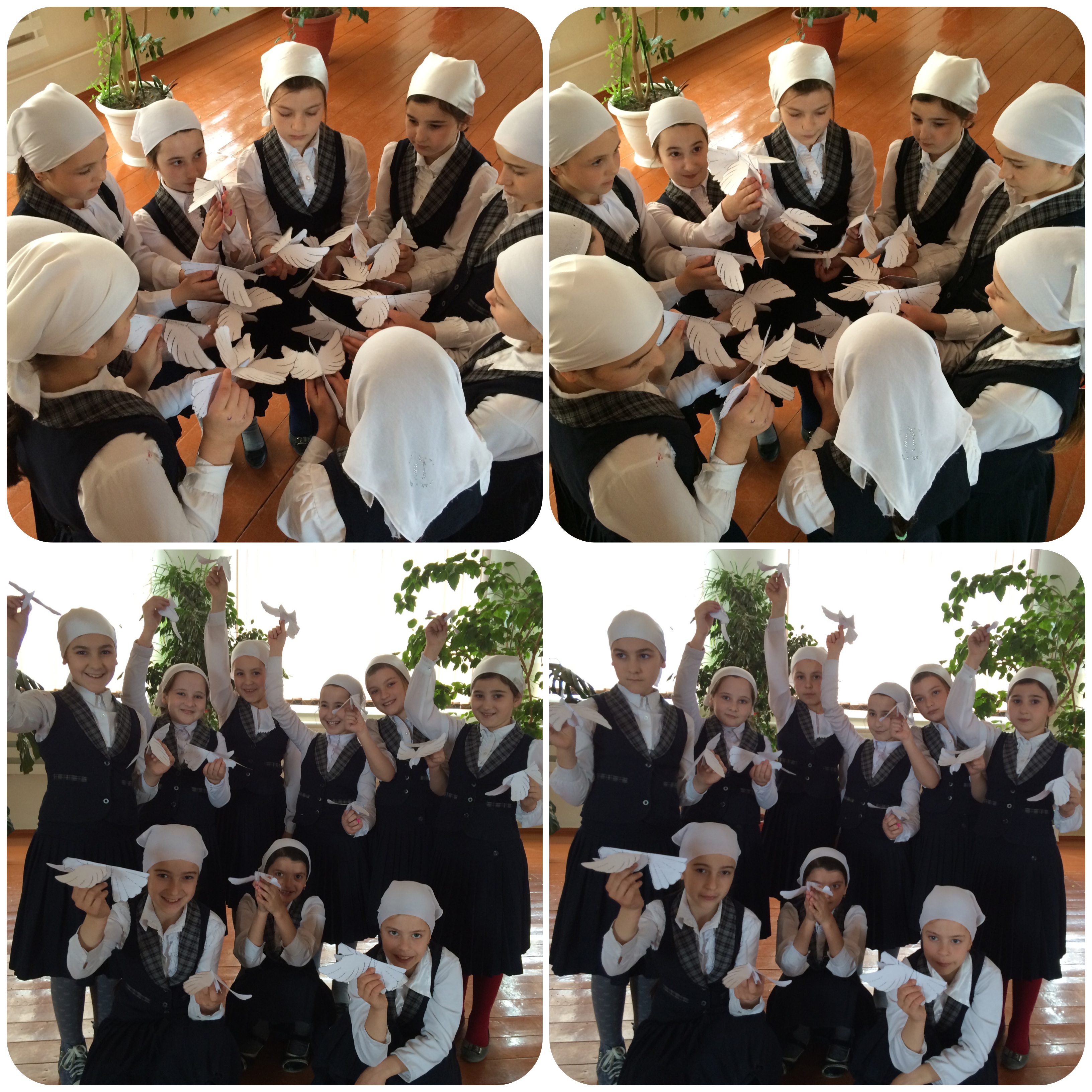 «Мир наступил»- в 1-2 классах. Дети были ознакомлены с историей отмены КТО.В 4 классах под названием «День мира на чеченской земле», «Мы за Мир на Земле».В 5 классе было рассказано о роли этой даты в жизни республики, и урок назывался «Отмена КТО в истории республики»