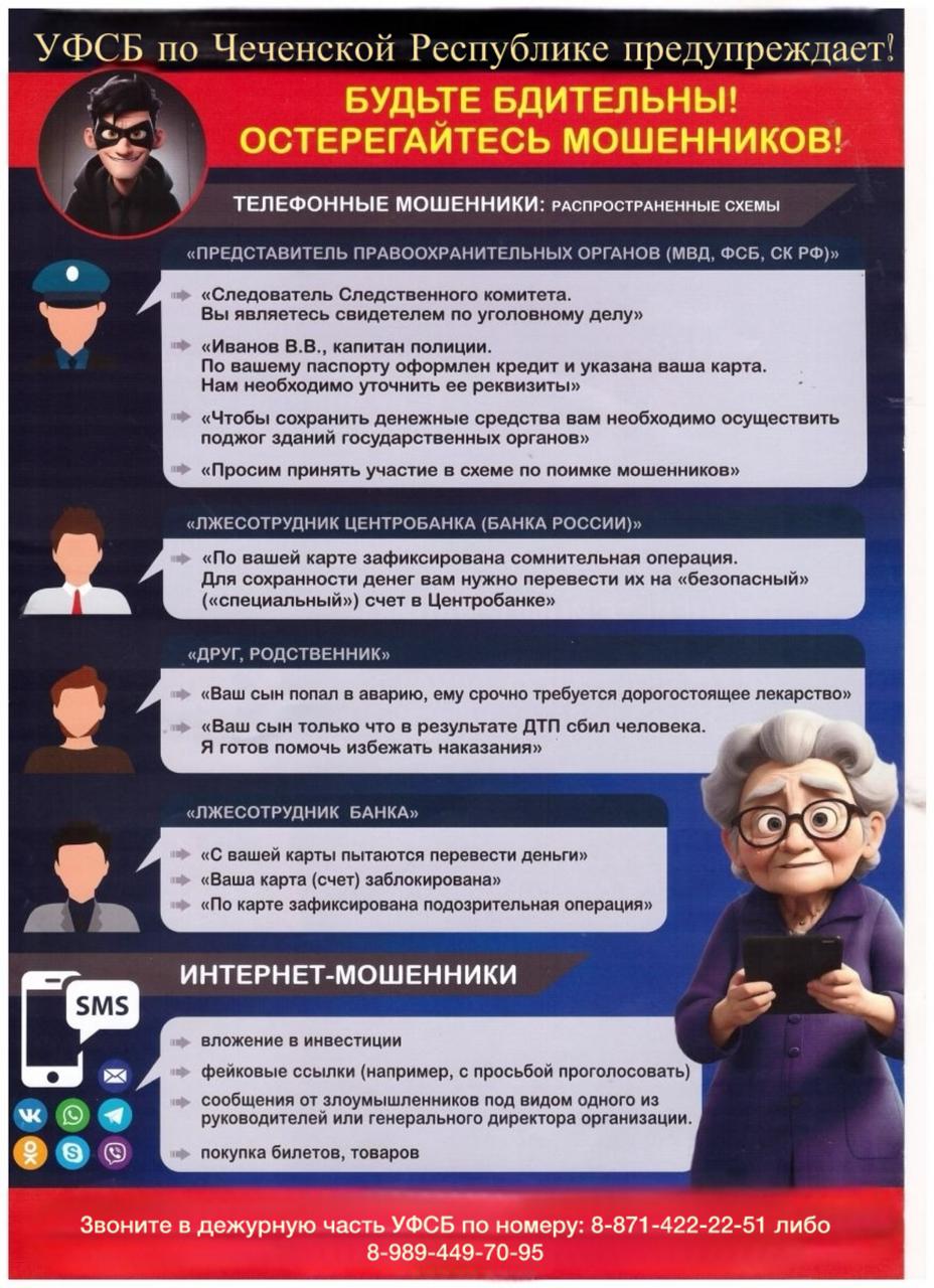 Внимание! Уважаемые граждане! УФСБ России по Чеченской Республике предупреждает об активизации деятельности украинских спецслужб! Будьте бдительны и осторожны, не сообщайте незнакомцам никакие сведени.