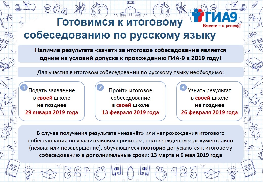 13 ФЕВРАЛЯ 2019 ГОДА ПРОЙДЕТ ИТОГОВОЕ СОБЕСЕДОВАНИЕ ПО РУССКОМУ ЯЗЫКУ ДЛЯ ВЫПУСКНИКОВ 9 КЛАССОВ